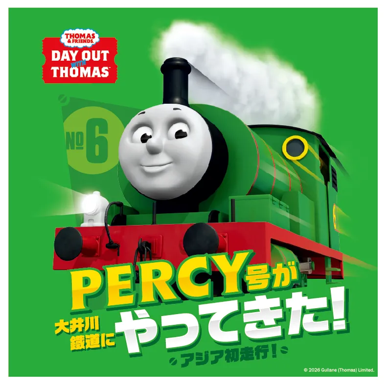 トーマスの大親友・パーシーが、今年ついに大井川鐵道で“みんなを乗せて走る機関車”としてデビューするよ。