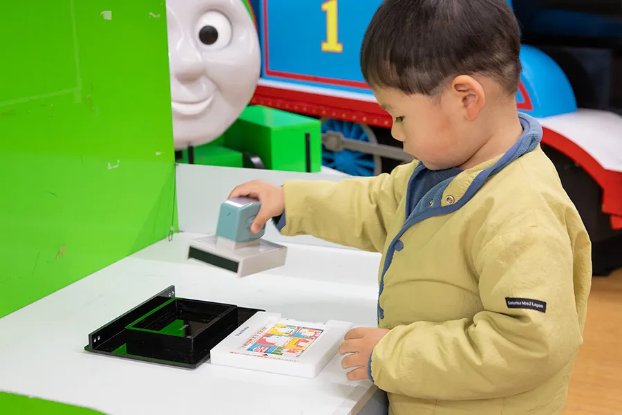車内ではきかんしゃトーマス号やパーシー号の汽笛や車内アナウンス、