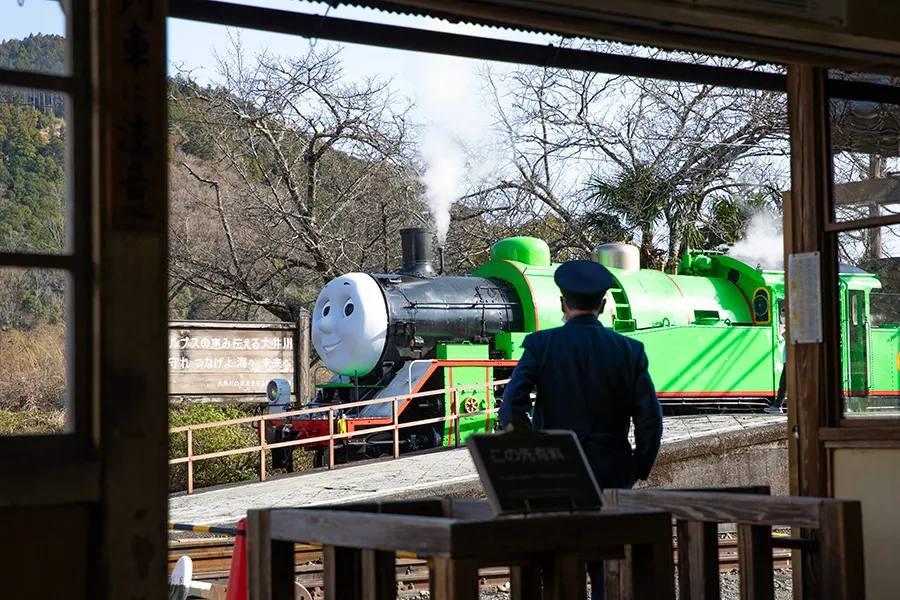 | 第1便 | 往路(ゆき:きかんしゃトーマス1号) 新金谷 10:39発 ↓ 家山 11:07着/11:11発 ↓ 川根温泉笹間渡 11:18着 復路(かえり:きかんしゃトーマス2号) 川根温泉笹間渡 11:29発 ↓ 家山 11:36着/11:42発 ↓ 新金谷 12:09着 |